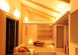 天井は折り上げ天井にし、広々とした空間が心にゆとりを生みだします。