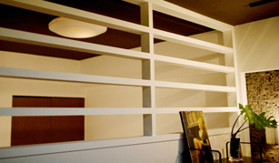 透過性を意識し、圧迫感を与える事なく一間の広がりを維持させています。