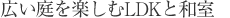 化粧梁を見せ、庭側を大開口サッシにすることで、庭の景観を楽しみつつ、日射しや風が通る快適な空間へ